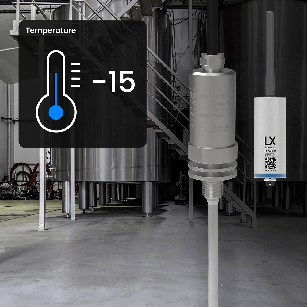 Hermetically sealed, explosion proof industrial temperature sensor for range -50°C to +50°C. This probe is ideal for use in cool-rooms, milk vats and for spray water, pipe and top soil temperature monitoring to create alerts when conditions change.